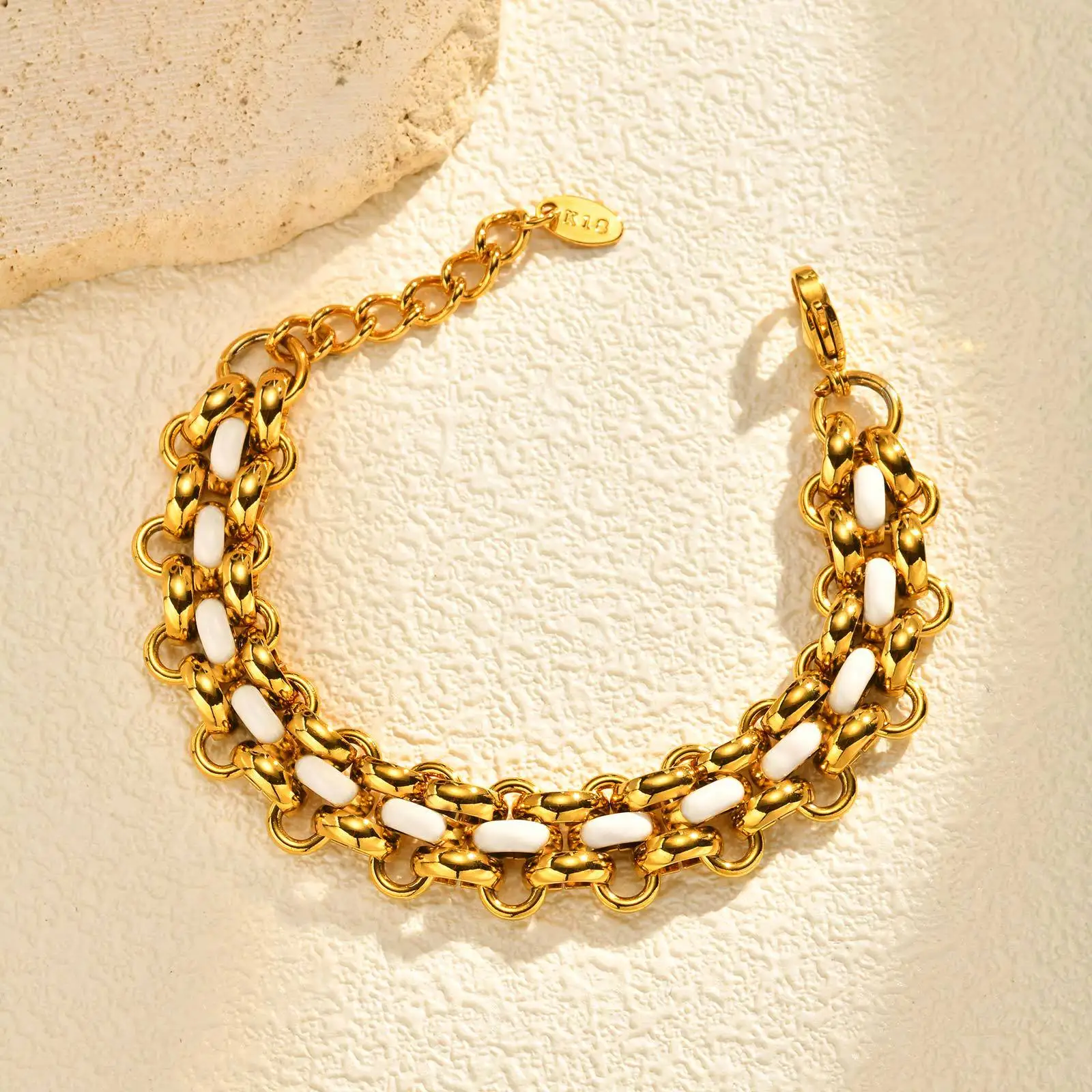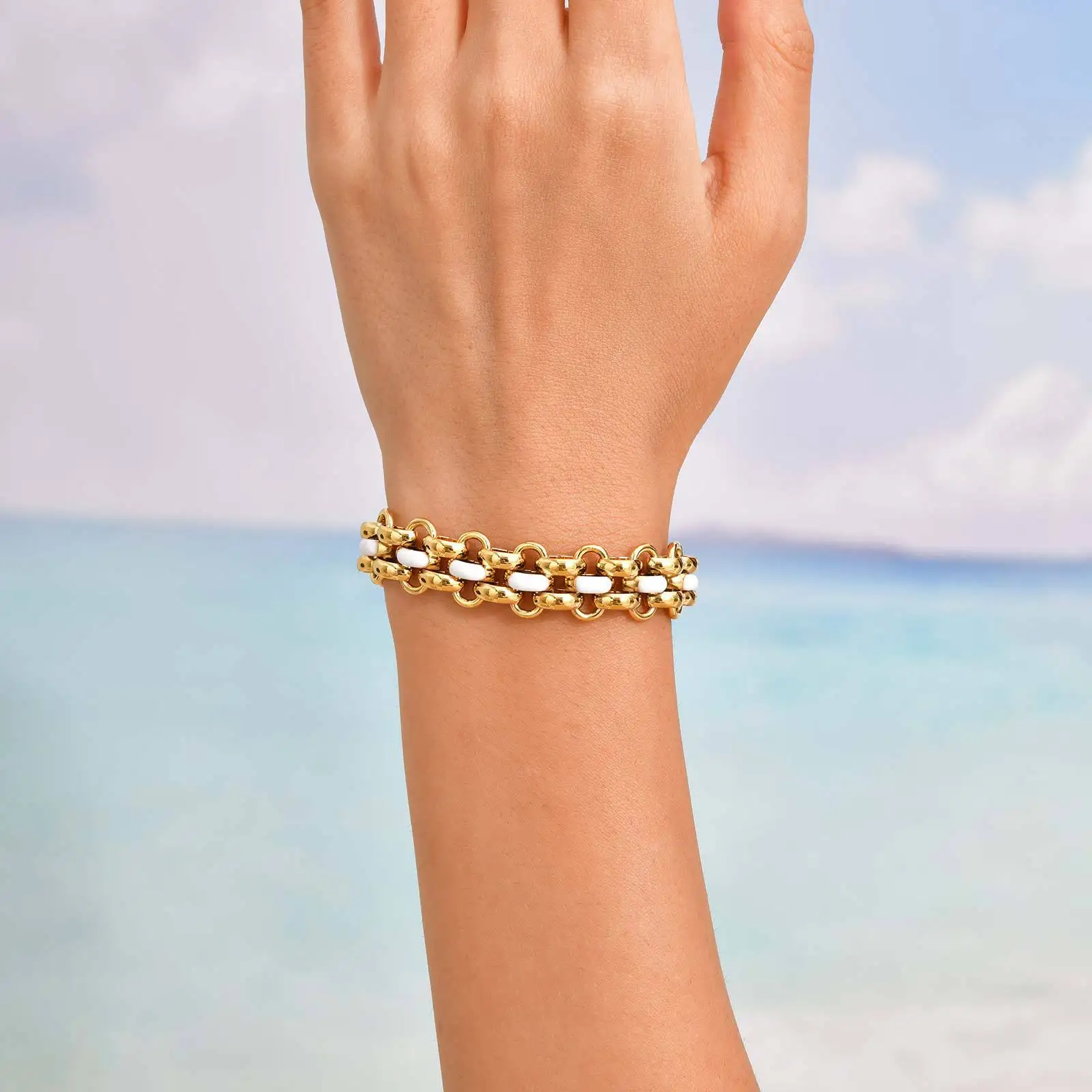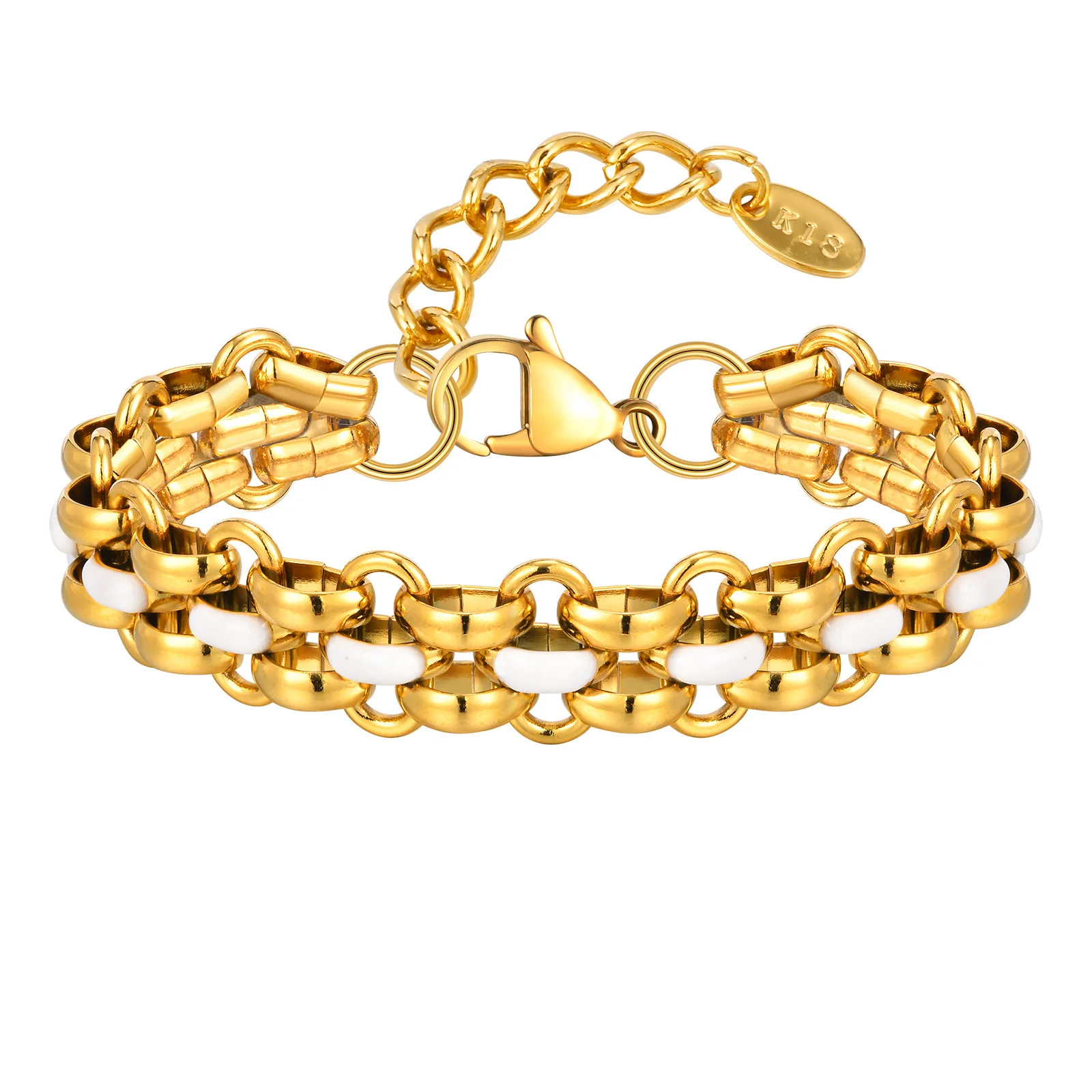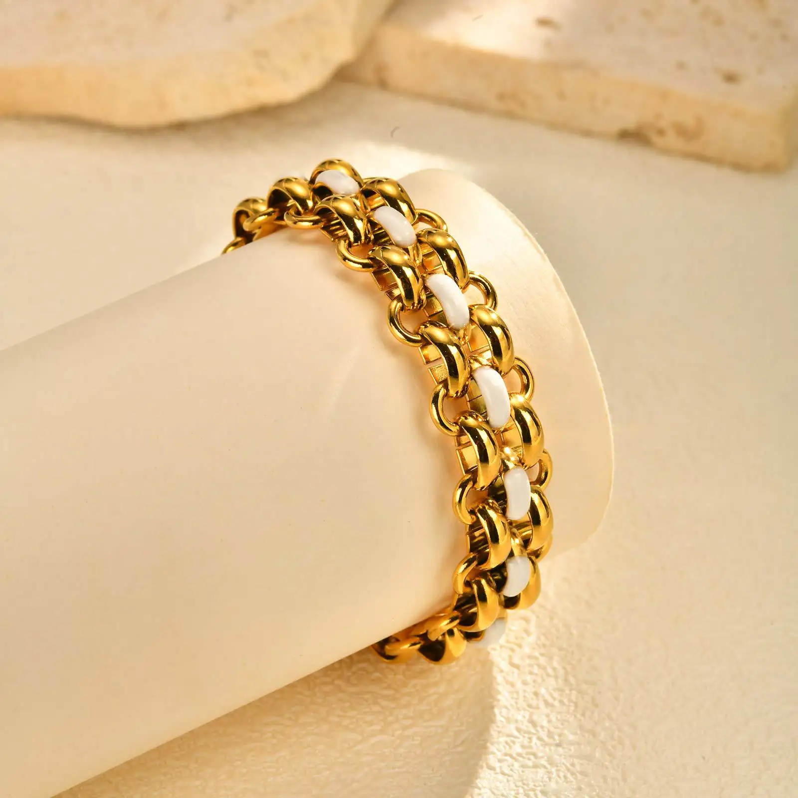 Minimalist Fine Jewelry Chain Link Bracelets Geometric Patterned Stainless Steel 18k Gold Plated Thick Cuban Chain Bracelet